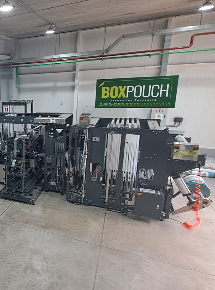 Las máquinas Box Pouch o Flat Bottom son una solución de envasado flexible de alta tecnología desarrollada para fabricar envases con fondo plano, conocidos por su estabilidad, eficiencia y menor impacto ambiental. Esta tecnología, distribuida por Italzip, permite la producción de envases con forma rectangular que optimizan espacio, reducen costos logísticos y mejoran la presentación del producto.